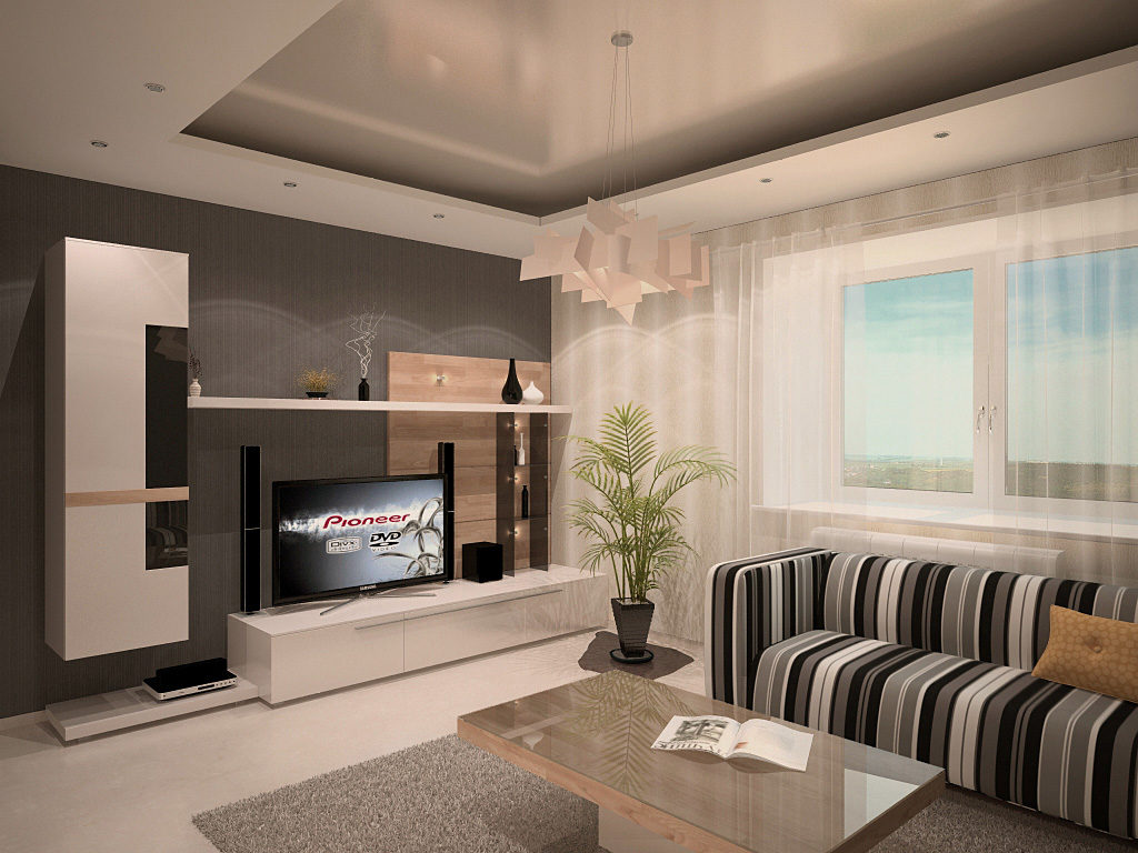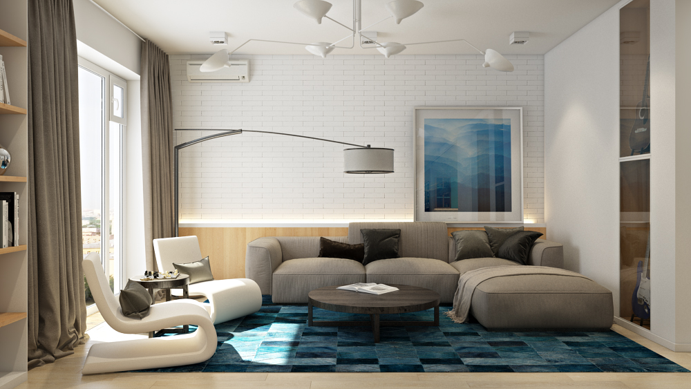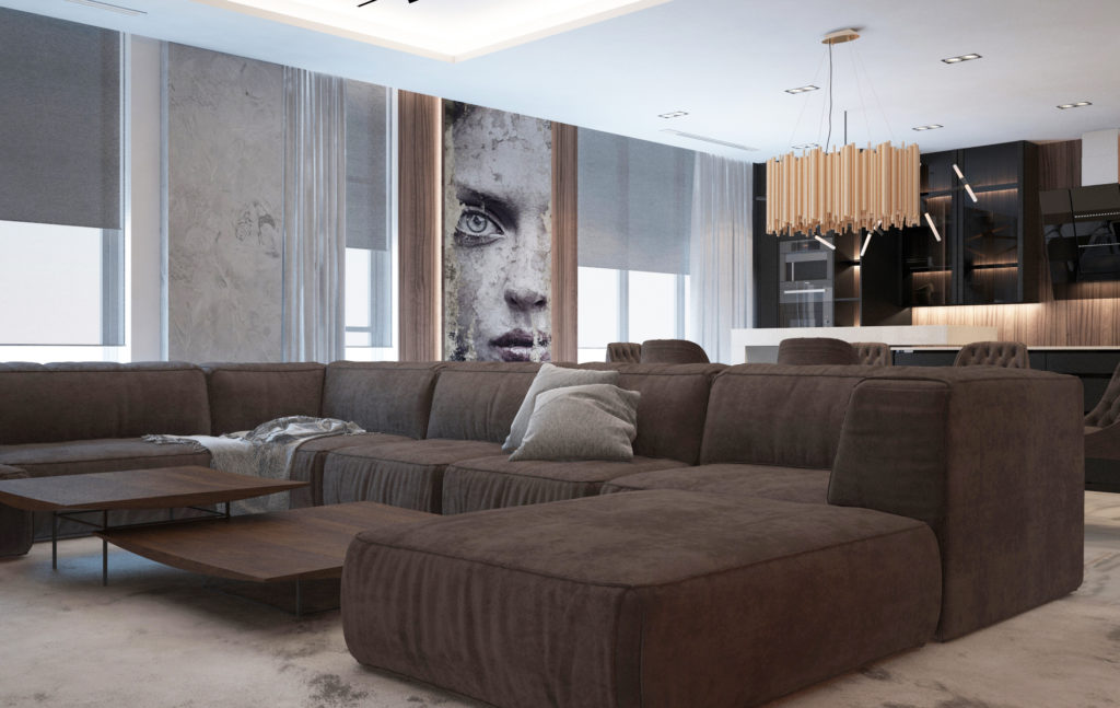 Степень удобства мебели определяют комфорт комнаты. Отдавайте предпочтение мягким моделям. Если помещение маленькое, выберите массивный диван со средней высотой спинки. Таким образом, размещение кресел не обязательно, что сэкономит пространство. Для больших помещений подойдут эргономичные решения, с выдвижными частями. Разместите 2 дивана или замените второй парой кресел.