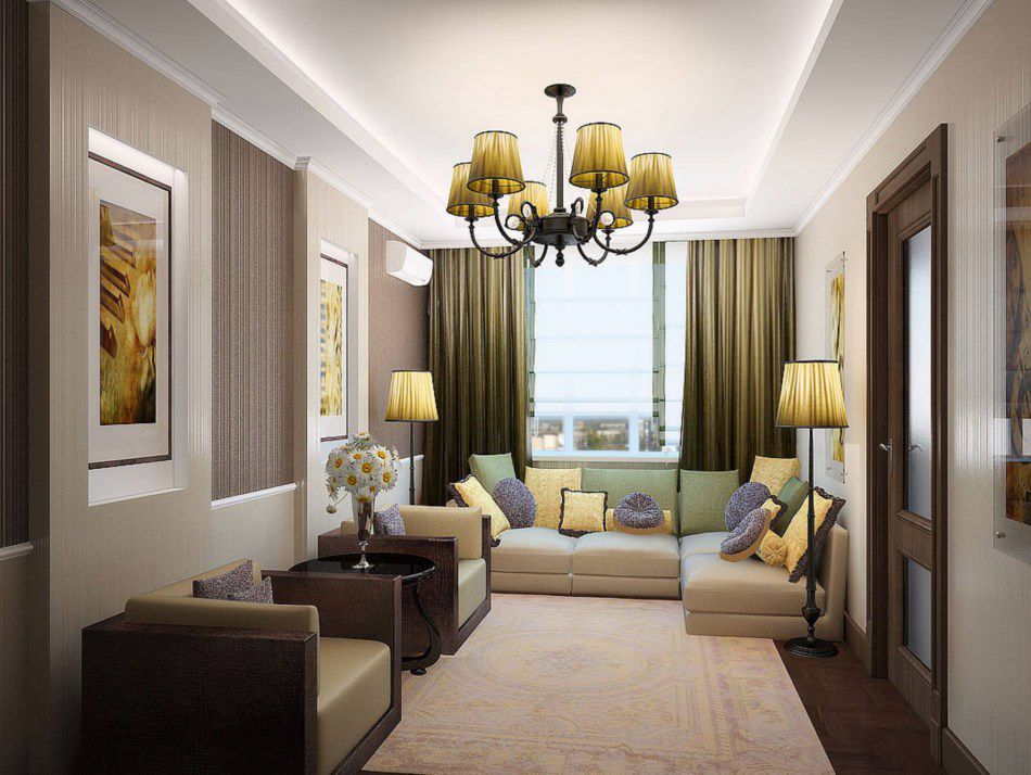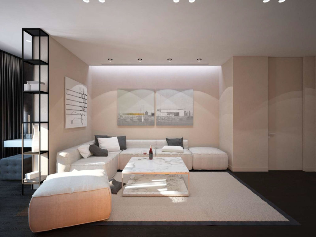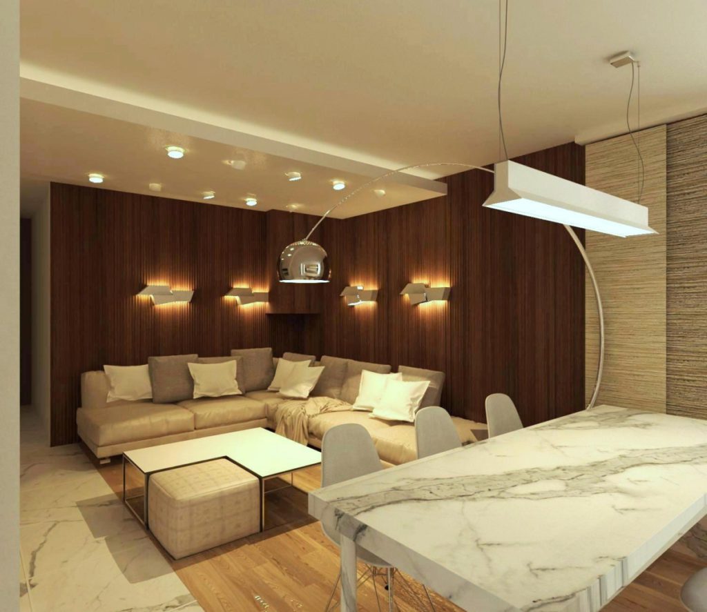 - Приглушенное освещение. Гостиная — место для отдыха, поэтому лучше всего подойдет рассеянный свет. Для большего удобства сделайте освещение комбинированным.