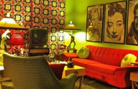 Китч пародирует общепринятые стандарты и каноны оформления помещений. Среди которых и стремление продемонстрировать благополучие. Поэтому в данном случае можно руководствоваться принципом «Чем ярче, тем лучше». При оформлении помещения в стиле китч нет никаких ограничений в плане гармоничности цветов, можно выбирать любые оттенки и их сочетание.