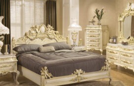 Мебель в стиле рококо отличается величественностью и относится к типу антикварных, предусматривает резьбу и позолоту.